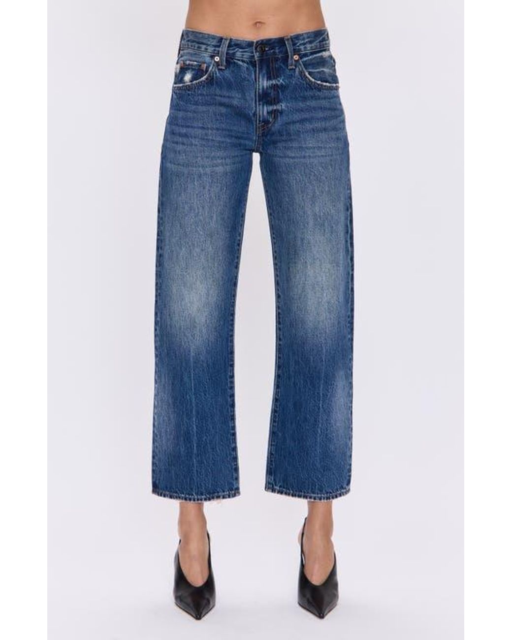 Cassie Super High Waist Crop Straight Leg Jeans - Blue
