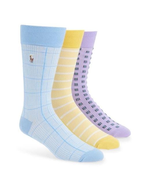 Men's Blue Assorted 3-Pack Geometric & Stripe Dress Socks