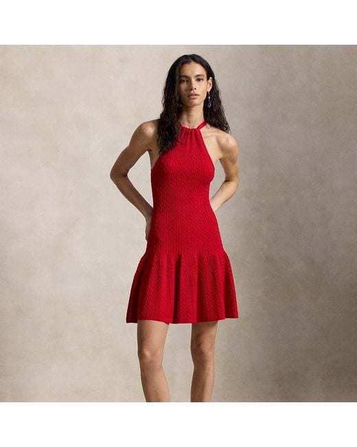Women's Red Cable-Knit Halter Dress