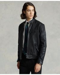 Polo Ralph Lauren Men's Black Café Racer Leather Jacket