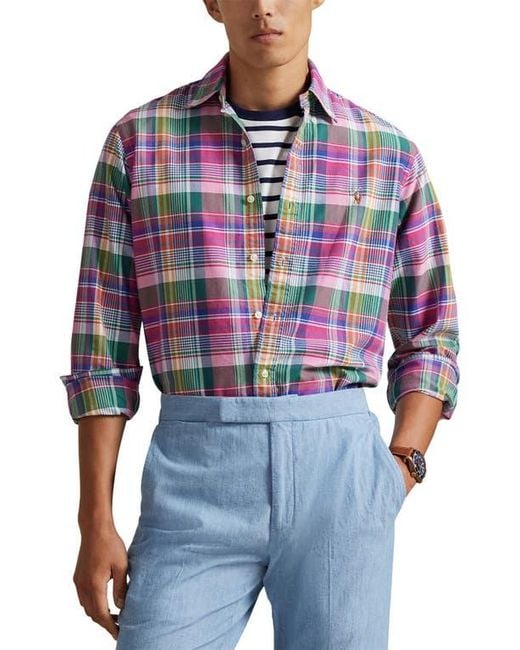- Classic Fit Plaid Cotton Button-Down Oxford Shirt