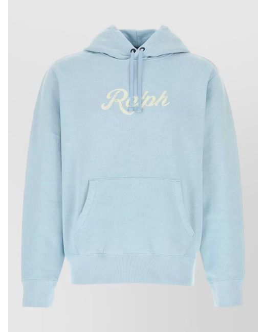 Men's Blue Cotton Blend Hooded Sweatshirt Kangaroo Pocket