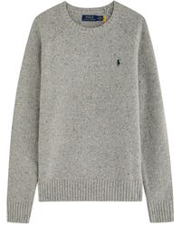 Go to Harvey NicholsInfo & Care Polo Ralph Lauren wool-blend sweater Crew-neck, dropped shoulders, embroidered designer crest, ribbed trims Slips on 55% wool,;44% cotton Hand wash Size & Fit Length shoulder to hem: 27 inches/ 68.5cm