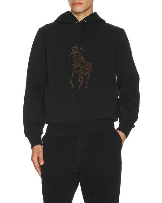 Men's Black Long Sleeve Double Knit Tech Hoodie With Large Camo Pony