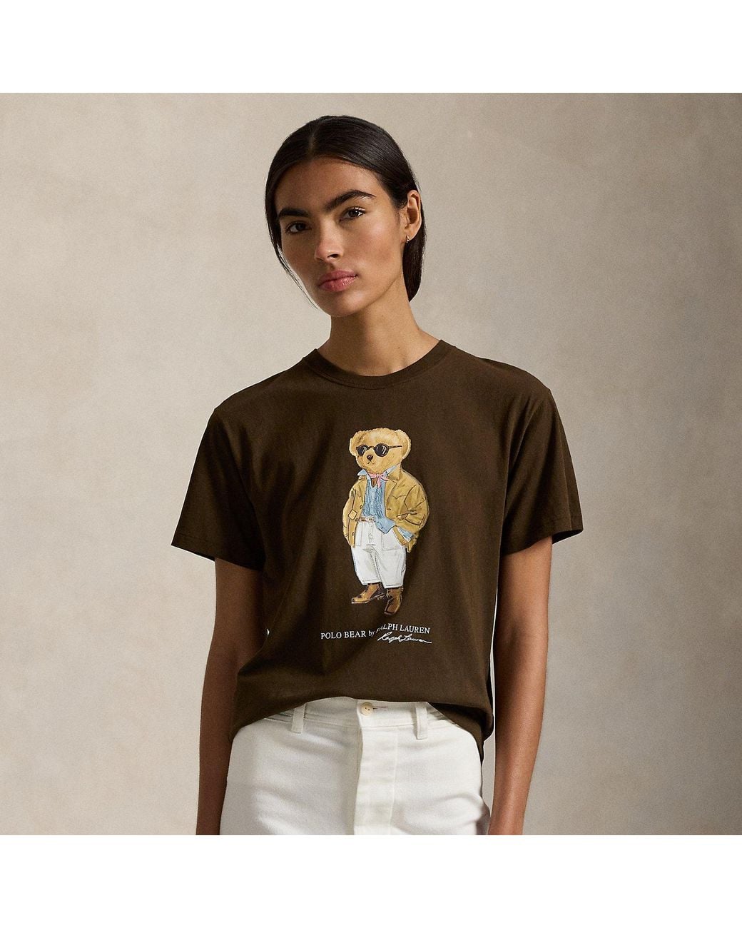 Women's Brown Polo Bear Cotton Jersey T-Shirt