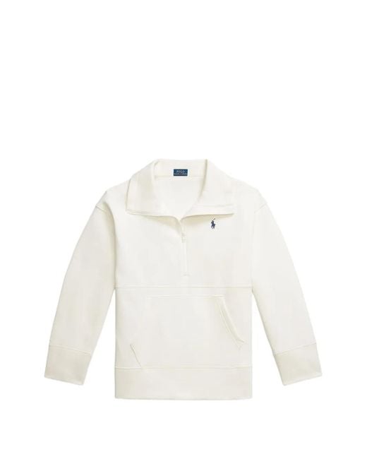 White signature Polo Pony motif half-zip fastening kangaroo pocket long sleeves Size: L. Gender: Female. Material:Cotton/Recycled Polyester. Color: white
