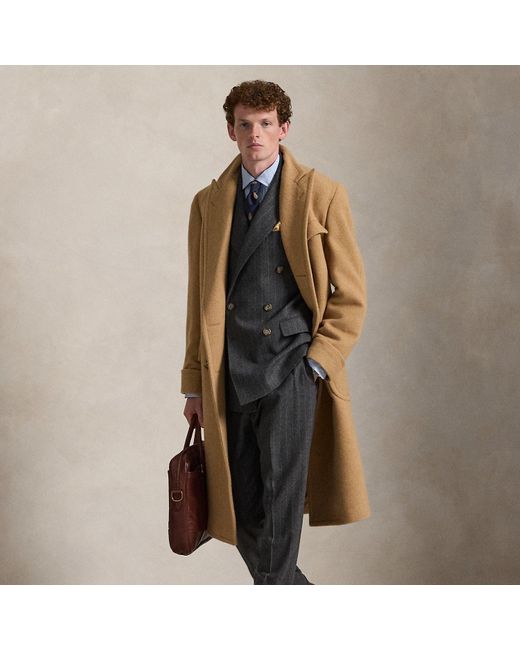 The Polo coat is named for its popularity among English polo players who would warm up in the garment between matches. Ralph Lauren's version maintains iconic details such as the double-breasted silhouette and belted back while elevating it with Italian craftsmanship and custom-woven camel hair from the famed Joshua Ellis mill.
