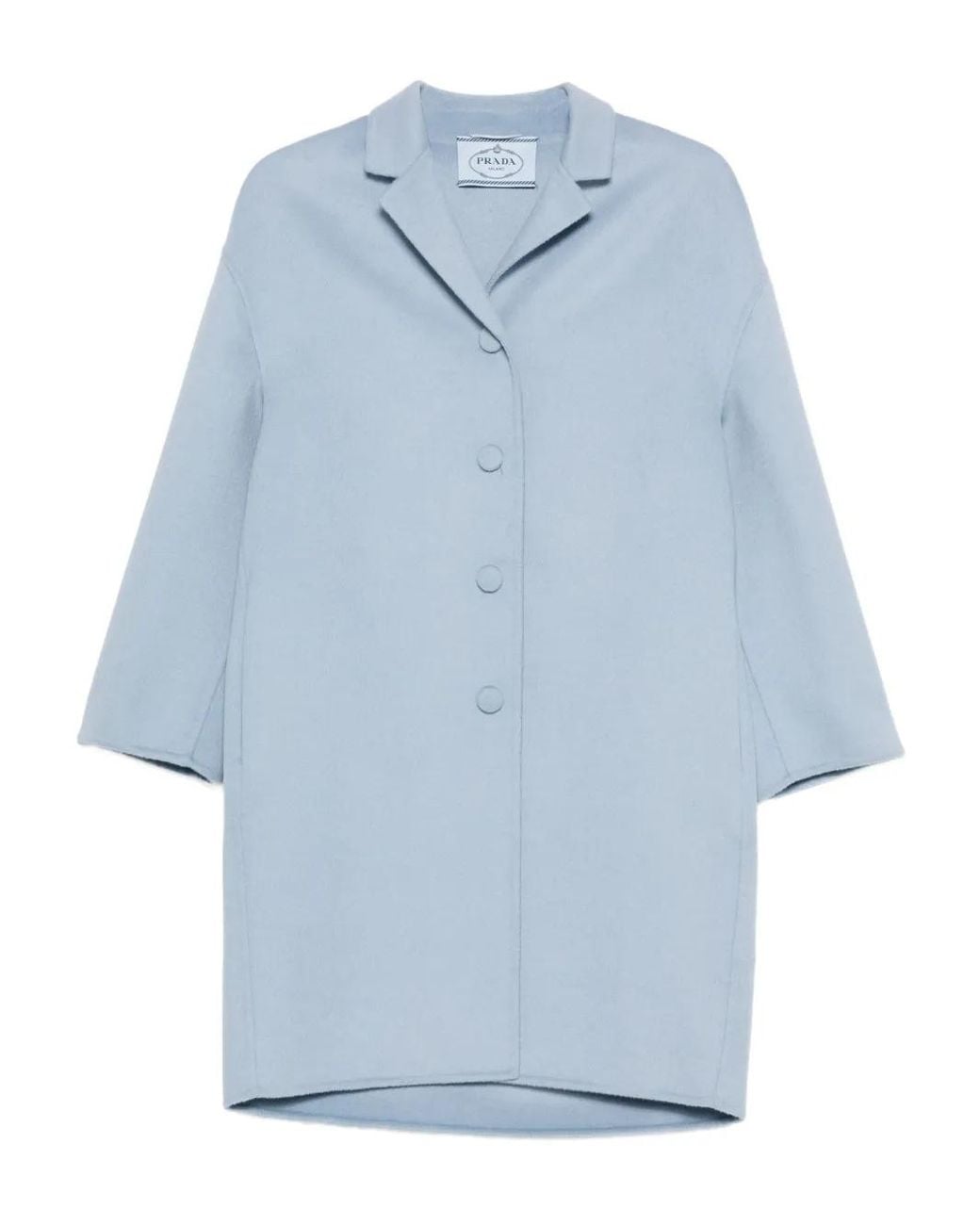 Light blue button fastening long sleeves straight hem Size: 42. Gender: Female. Material:Fabric. Color: blue