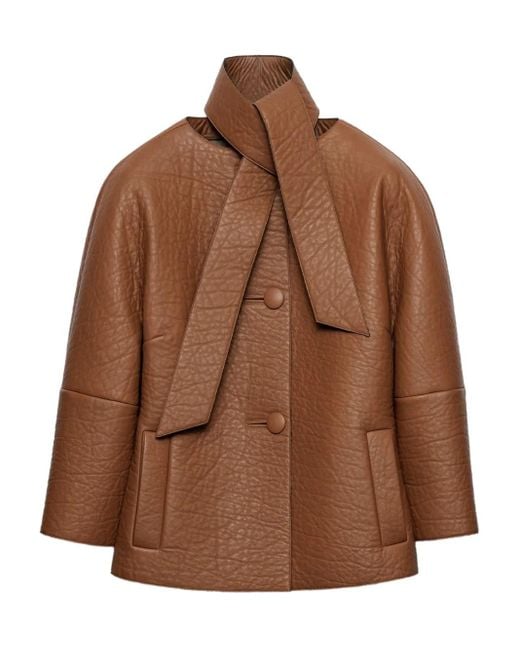 - Scarf-Detail Leather Jacket