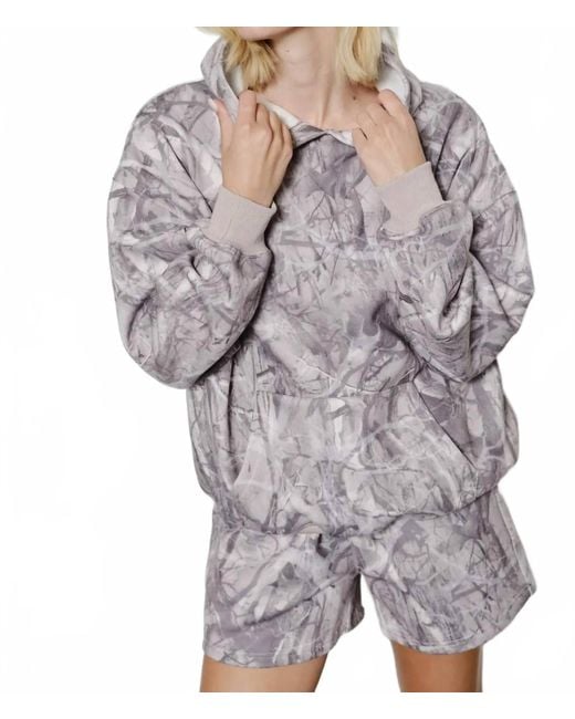 Cooler temps call for layering and we love this adorable sweatshirt for all the obvious reasons.The Blake Camo Hoodie brings cozy comfort and effortless style together in one versatile layer. Designed with an allover neutral camo print, this pullover features a roomy hood, ribbed cuffs and hem, and a front kangaroo pocket for a laid-back look. Made with soft, midweight fabric, it's perfect for lounging, layering, or casual everyday wear.Allover neutral camo printFront kangaroo pocket and adjusta Color: gray