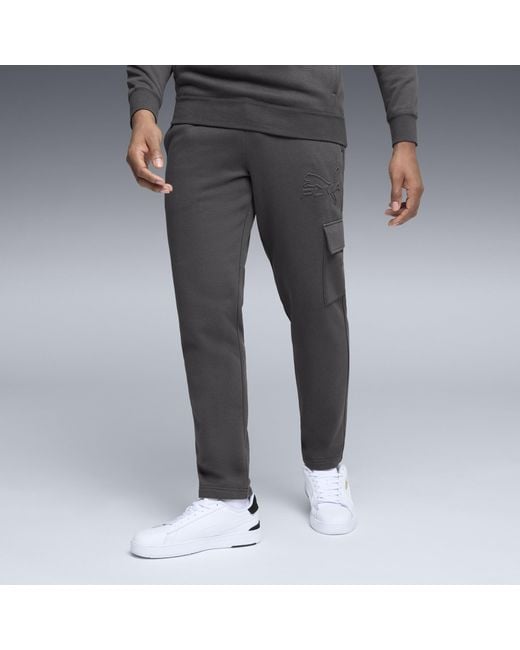 Stylish, comfy, and always on point â PUMA Essentials are made for laid-back days. Whether you're lounging, grabbing a coffee, or on the go, these pieces provide the perfect mix of comfort and style. Simple, versatile, and designed to keep you feeling great all day long. FEATURES & BENEFITS Made with at least 50% recycled materials Fit: RegularMain Material: FleeceLength: RegularRise: MediumPockets: Side Cargo PocketsRibbed waistband | PUMA Elevated Essentials Men's Cargo Pants in Gray, Size L Color: gray