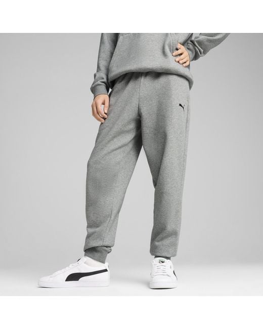 Featuring an elastic waistband with internal drawcords and rib cuffs, these PUMA sweatpants offer a comfortable fit. The embroidered PUMA Cat Logo adds an extra touch. Perfect for lounging at home or casual days. FEATURES & BENEFITS Made with at least 50% recycled materials Regular fitFleece materialRegular lengthMedium riseSide pocketPUMA branding details | PUMA Essentials Men's Sweatpants in Gray, Size XXL Color: gray