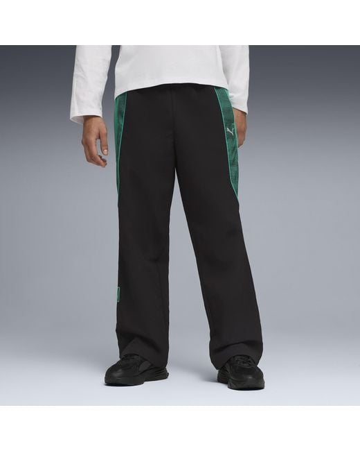 PUMATECH-X is where PUMAâs deep roots in football culture meet a new wave of streetwear design. Every piece channels the passion and energy of the game, reimagined through bold graphics, dynamic textures, and loud pops of color. These track pants feature bungee-adjustable hems for a customizable fit, blending tech-inspired functionality with street-ready style. FEATURES & BENEFITS WIND PROTECTION: Technical windCELL material constructions help protect against windy conditions and keep you dry and warmMade with at least 90% recycled materials. Fit: RelaxedMain material type: Plain weaveLength: RegularRise: MediumPockets: Side pocketElasticated waistbandHem with bungee drawcords | PUMATECH-X Men's Relaxed Track Pants in Black, Size L Color: black