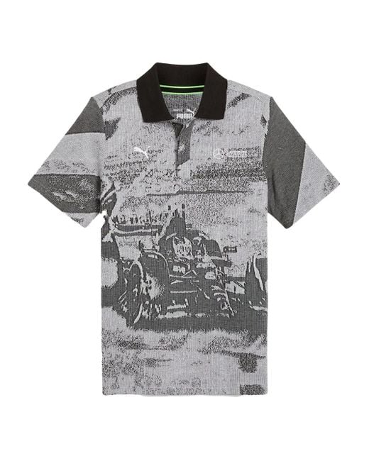 Men's Gray X Mercedes Amg Petronas F1 Team Patterned-Jacquard Polo Shirt