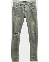 Purple Men's Blue Velour Flock Skinny Jeans