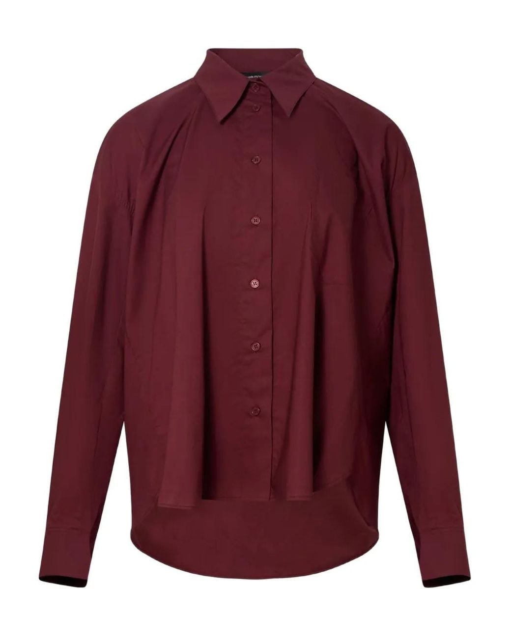 Red button-fastening long-sleeves polo-collar asymmetric-hem Size: XS. Gender: Female. Material:Cotton. Color: red