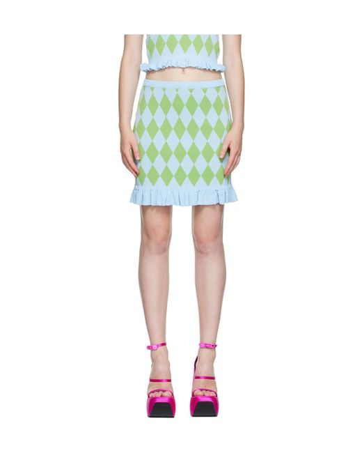 The skirt features an all-over diamond pattern, an elastic waistband, and a ruffled hem. Color: green
