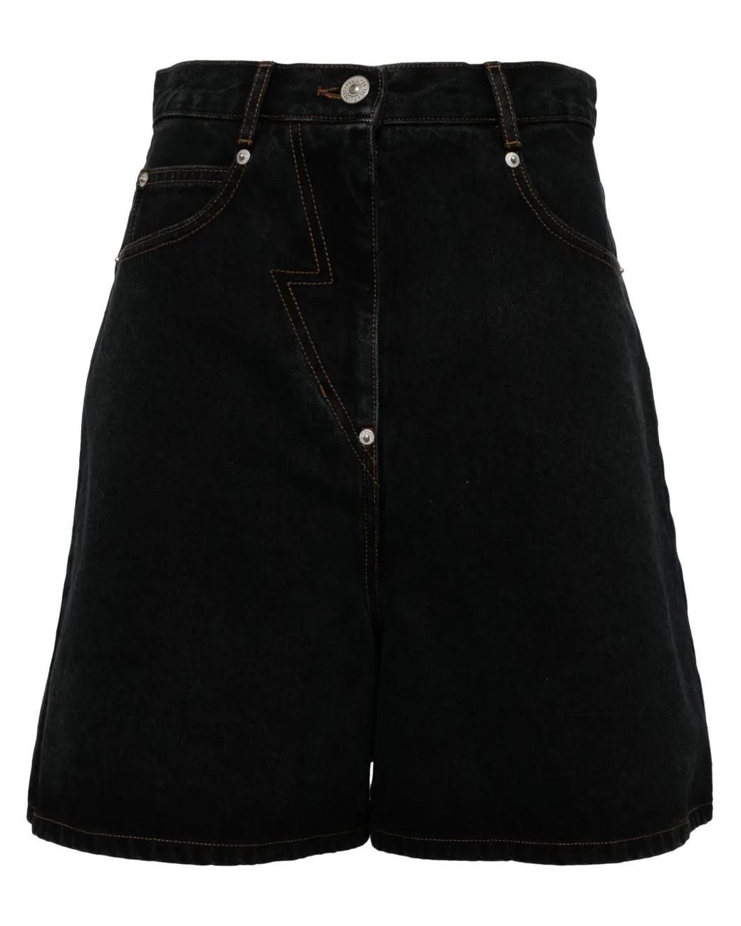 Dark blue cotton denim front button and zip fastening belt loops classic five pockets logo patch to the rear contrast stitching high-waisted thigh-high Size: S. Gender: Female. Material:Cotton. Color: black