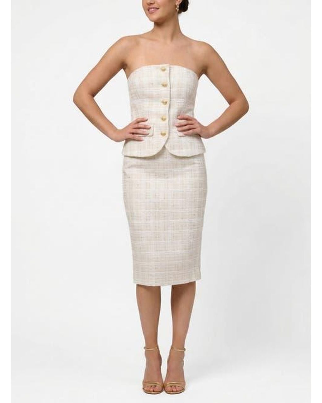 Women's White Ellison Tweed Peplum Midi Dress