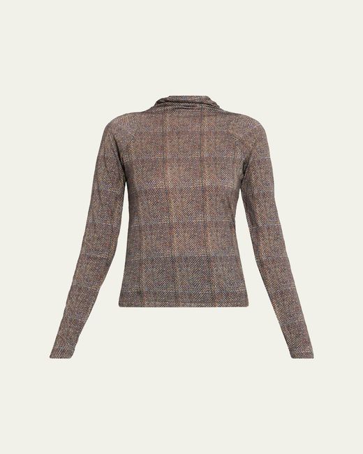 Women's Brown Shaw Plaid Turtleneck Top
