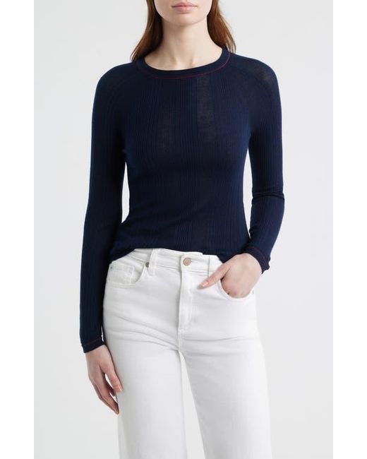 Made of a naturally breathable and incredibly soft silk-enhanced blend, this ribbed top is framed by comfortable raglan sleeves. Color: blue