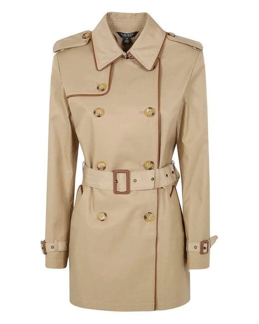 Women's Natural Belted Double Breasted Pu Trench Lined Trench