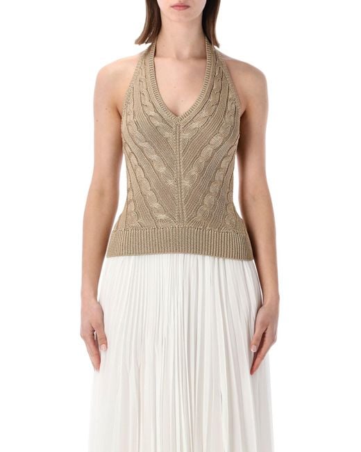 Women's Natural Cable Knit Silk Halter Top