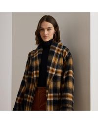 Go to Ralph LaurenCrafted for the feel of a soft knit sweater this wool-blend coat combines classic tailored details such as peak lapels and four-button cuffs with a true patchwork construction featuring an array of menswear-inspired patterns. Color: brown