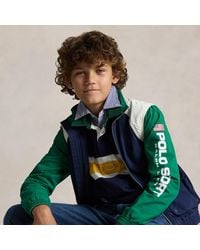 Go to Ralph LaurenPart of the season's motocross-inspired concept this unisex water-repellent layer features a silhouette based on our Polo Sport windbreakers and vintage BMX jackets from the 1970s. Color: blue