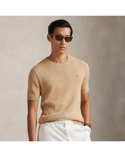 Men's Natural Rib-Knit Cotton Short-Sleeve Sweater