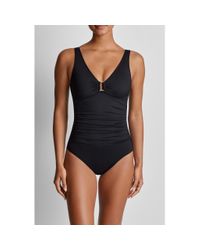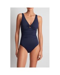 Go to NordstromShirring at the waist slims the silhouette of this one-piece swimsuit fronted with logo hardware for subtle branded charm. Color: pink