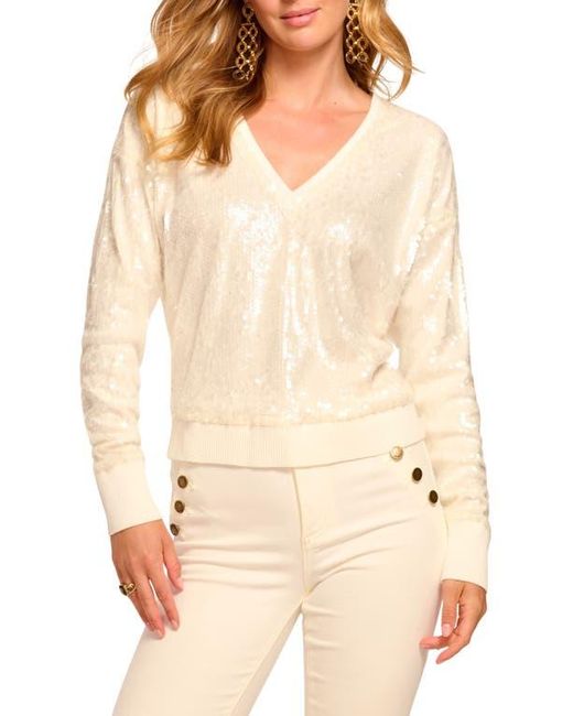 Delphina Sequin V-Neck Long Sleeve Top - Natural