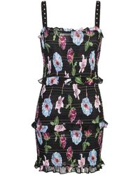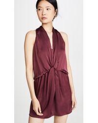 Gorgeous satin charmeuse comes together at the waistline with a knotted effect in our sleeveless marie dress. The plunging neckline highlights your décolletage and the thigh-high hem will give you legs for days. Satin charmeuse. Dry clean only. Model is wearing size s. Model measurements: height 5'10" / bust 34" / waist 24" / hips 35". If you are between sizes, we suggest sizing down. Color: purple