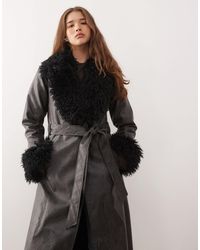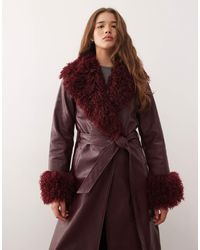 Go to ASOSCoats & Jackets by Reclaimed Vintage Exclusive to ASOS Shawl lapels Tie waist Side pockets Faux-fur trims Longline cut Regular fit. Polyurethane/Polyester. Color: brown