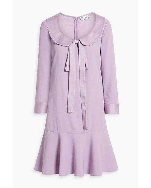 Women's Purple Satin-trimmed Ruffled Crepe Mini Dress