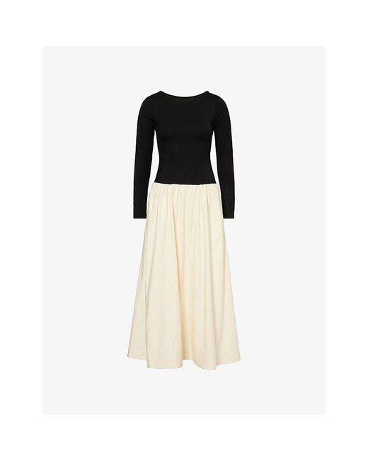 Women's Black Abel Contrast-Skirt Cotton-Blend Midi Dress