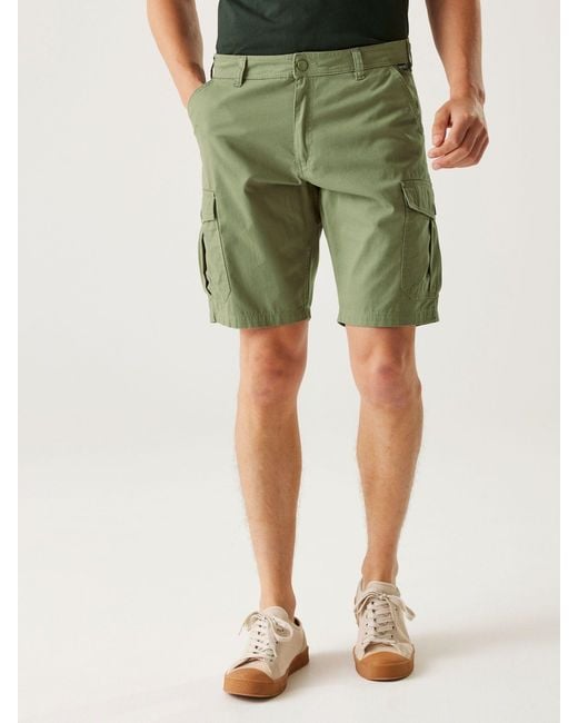 The Ruwan men's shorts from Regatta will style up your everyday with ease. The new fabric provides lasting wear. With a stylish wash for softer handle and a vintage look, coordinate these shorts with sneakers and your favourite tee for a casual outfit. Finished with a UV protection. 100% Cotton. Color: green