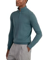 Reiss Men's Gray Blackhall Merino Wool Slim Fit Quarter Zip Mock Neck Sweater