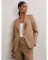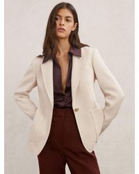 Reiss Women's Blue Single-Breasted Textured Blazer Wool-Blend