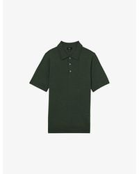 Reiss Men's Blue Maxwell Half-Zip Short-Sleeve Merino-Wool Polo