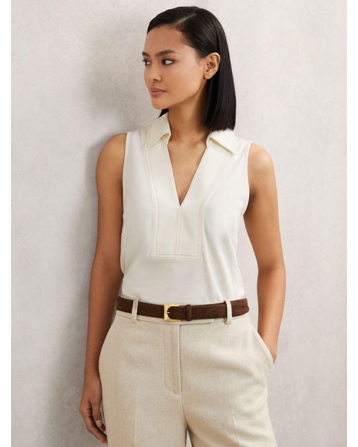 - Neutral Cotton-Blend Collared Sleeveless Top