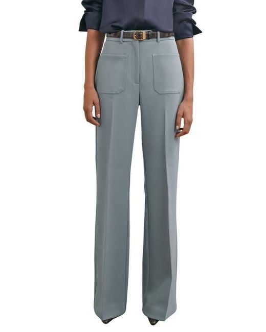 Flared hems add retro inspiration to these polished pants made with a quartet of patch pockets. Color: blue