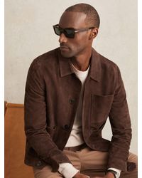 Reiss Men's Brown Roma - Mocha Suede Button-through Jacket