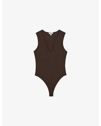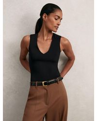 Reiss Women's Black V-Neck Sleeveless Jersey Bodysuit