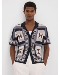 Reiss Men's Black Knitted Cuban Collar Shirt