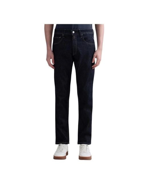 Replay Willbi Jeans combine a regular-slim silhouette with built-in stretch for comfortable everyday wear. Designed for relaxed styling, they balance a modern tapered leg with easy mobility. Key attributes: Blue | Dark denim | Cotton | Stretch fabric | Soft hand | Durable construction | Five-pocket design | Button fly closure | Contrast stitching | Tapered leg | Button-fly detailing | Dimensions & fit: Regular slim fit | Regular/loose at the thigh with a slightly tapered leg | Composition & care: 80% cotton | 12% lyocell | 8% elastane/lycra Color: blue