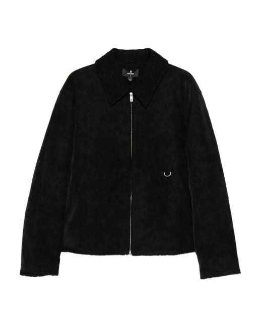 Men's Black Shearling-Collar Zip-Up Jacket