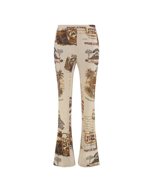 Stay stylish and comfortable in these wide pants from Rhude, featuring an elasticated waistband for a perfect fit. Key attributes: Beige | Polyester | Elasticated waistband | Flared design | Dimensions & fit: Regular fit | Composition & care: 100% Polyester | Machine wash cold, tumble dry low. Color: natural