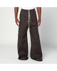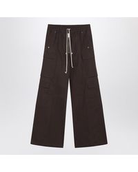 Go to TheDoubleFDust color wide cargo pants from Rick Owens featuring an elasticated waistband with drawstring, front zip, two side welt pockets, two back welt pockets and four cargo pockets with flap. Color: brown