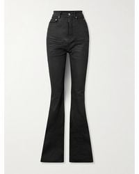 Go to YOOXFlared jeans, denim, coated effect, solid color, no appliqués, colored wash, elasticized waist, regular fit, 1 button, zipper fastening, multipockets, stretch, hand wash or dry clean, do not bleach, do not tumble dry.